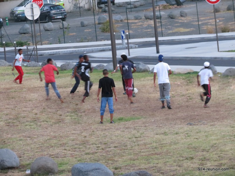 Toujours est t’il pour revenir au sujet, il y a une pelouse bien rectangulaire dans le quartier! Les gamins du quartier l’ont donc utilisé: